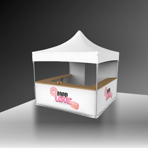 Pour ceux qui souhaitent aller plus loin dans la personnalisation, LPTENT est une société spécialisée dans la personnalisation. Elle offre des solutions sur mesure pour faire de votre stand pliant un véritable outil de communication. En plus des accessoires standard, vous pouvez opter pour une impression complète de votre barnum, incluant la structure, la toile, et les accessoires.